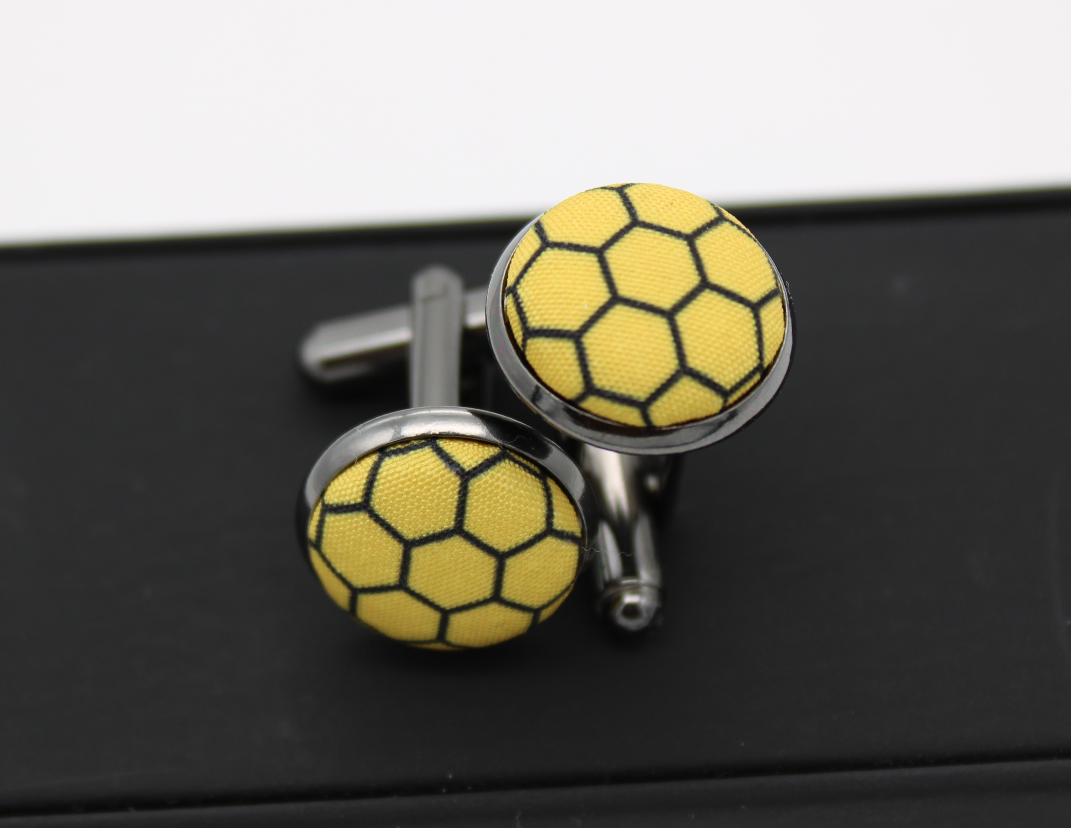 - Mounted on a silver coloured brass cufflink base